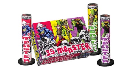 .35 MONSTER 3 packRåtøffe enkeltskudd med dobbelteffekter i størrelse EXTRA LARGE! Hvert skudd har en underliggende floral-effekt i ulike varianter og toppladninger med ekstra kraftige drønn. Når bare det grommeste er godt nok. Bestselger!