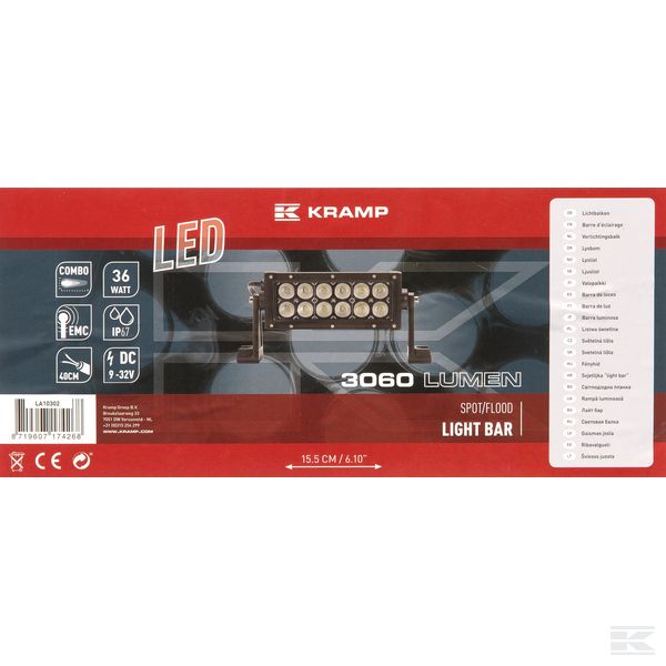 Beskyttelsesklasse [IP] ip67Effekt [W] 36Lumen [lm] 3060Spenning [V] 9-32VTilkobling 40 cm KabelBredde [mm] 193
