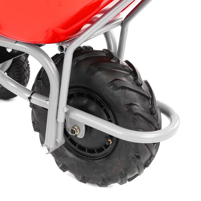 Hecht Elektrisk Trillebåre med tre hjul gjør det enkelt å transportere tyngre last over lange strekninger og i ulendt terreng. Trillebåren er utstyrt med et kraftige luftfylte hjul og kan frakte 100 liter opptil 12 timer. Makshastigheten er 6 km i timen og bredden er kun 70 cm som gjør at den kommer til de fleste plasser. Trillebåren er et perfekt hjelpemiddel for når lasten blir for tung eller over lengre økter.